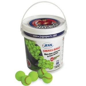 Develop hand-eye coordination and a quick bat by practicing small! Forces hitters to focus and track the ball from the release point to impact. The smaller size promotes mental concentration, especially when used in conjunction with a small diameter bat. Use by themselves or with the JUGS Small Ball Pitching Machine #03783.