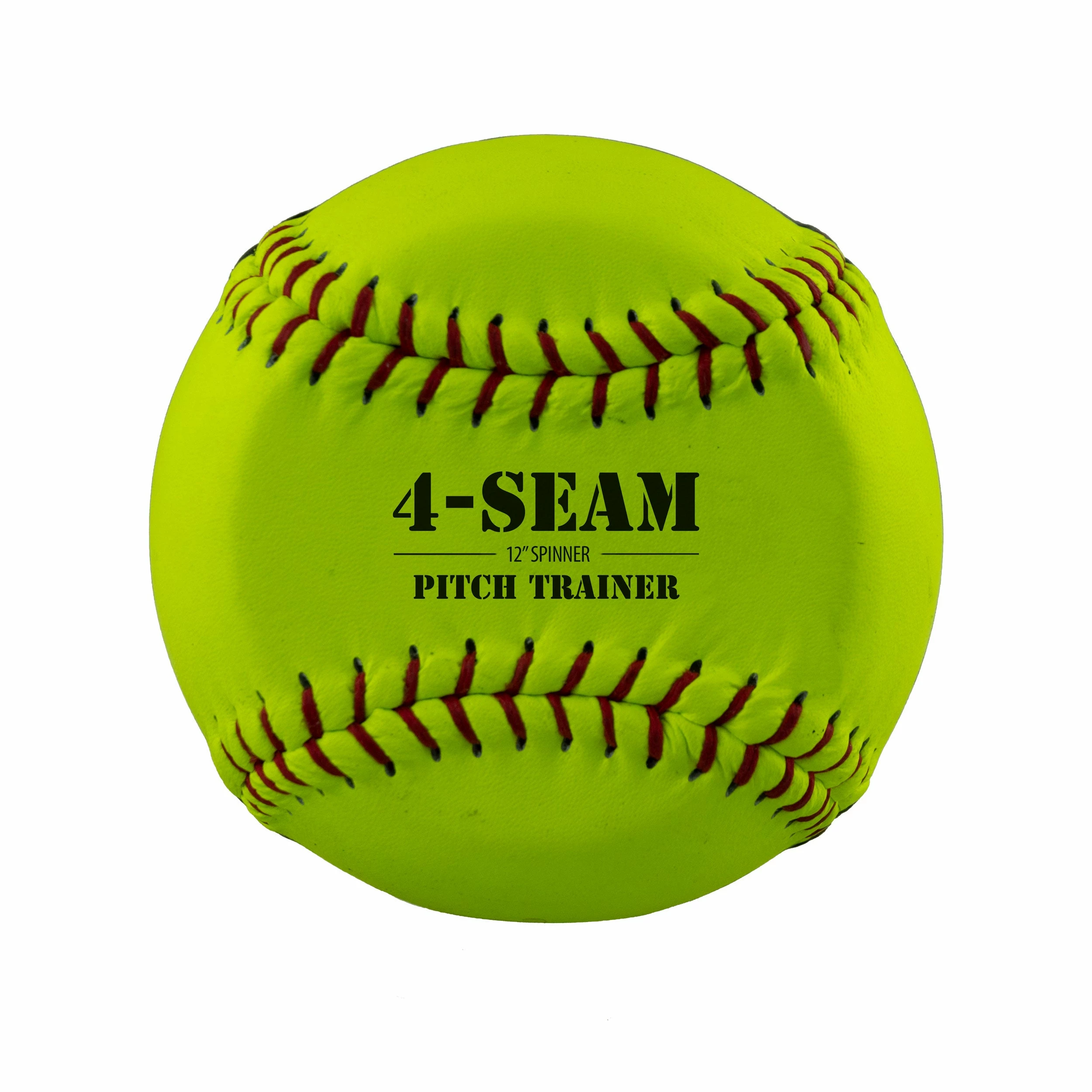 Work on your fast pitch prowess by using Bownet® 4-seam training softballs during bullpen sessions. Our 12-inch Pitch Trainer spinner balls assist with developing or correcting spin on curveballs, drop balls, backdoor curves and even fastballs. They have two flat sides with raised seams so players can focus on technique. The black centerline shows whether you’ve put the correct rotation on your pitch- if you can see this black line as the ball flies through the air, then it’s spinning the way it should. A spinner softball also helps with overall grip and control so players can locate their pitches.