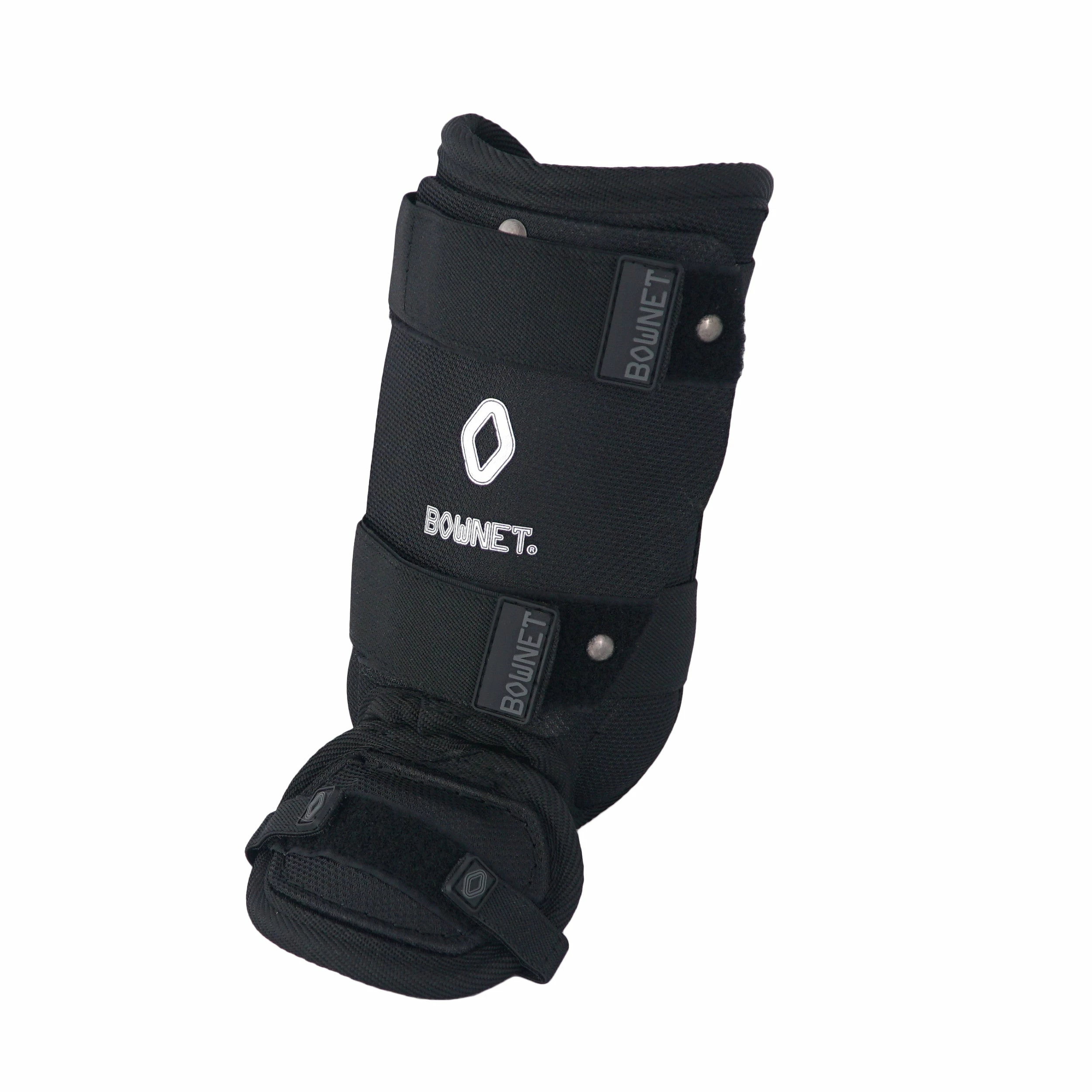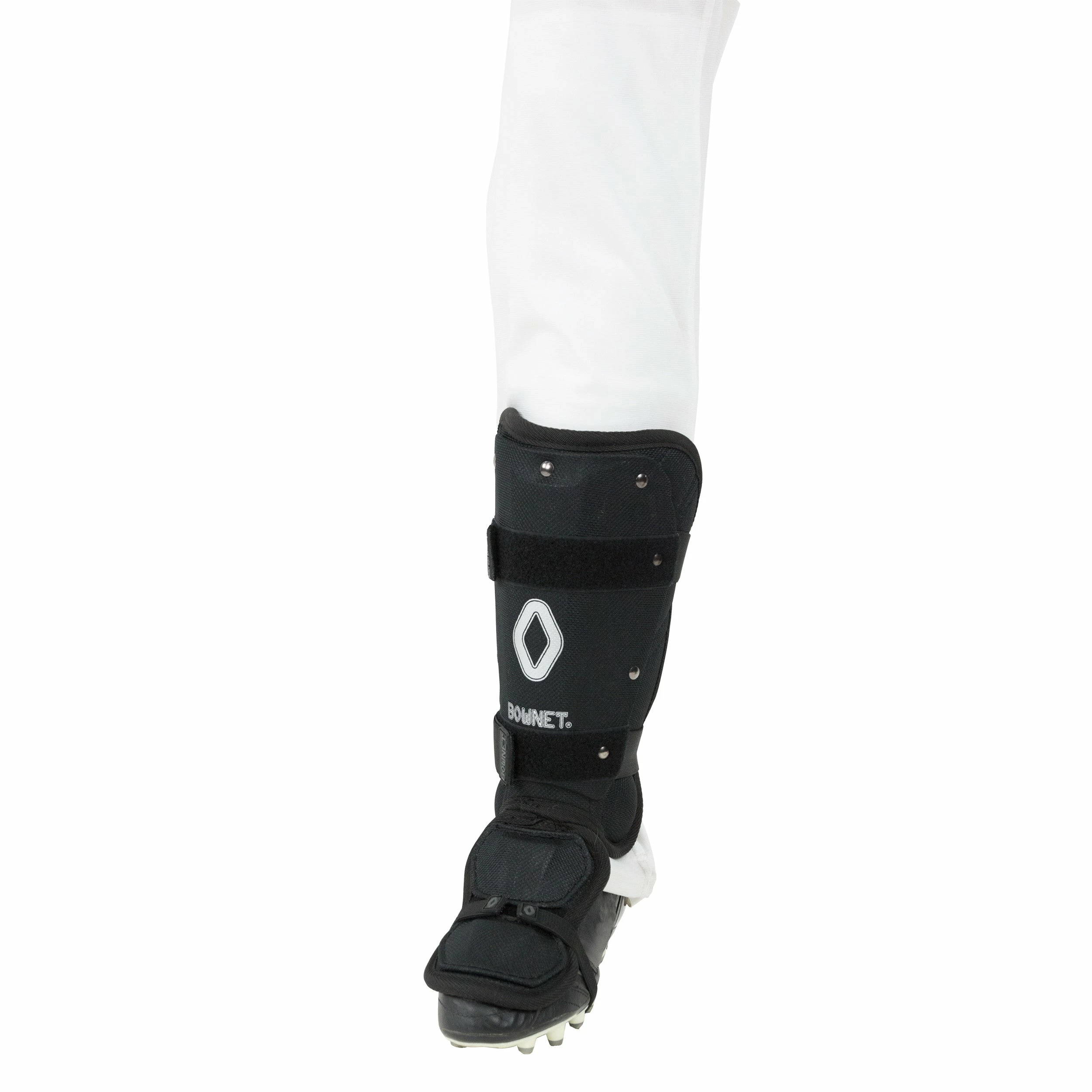 Bownet brings advanced protection with the form-fitting Ankle Guard. The lightweight, comfortable Ankle Guard offers at-bat protection for baseball and softball players alike. The adjustable hook and loop straps make wearing the protection ankle guard comfortable for left or right hitters. The sleek design is contoured with a soft, comfortable interior and is custom molded to fit most players without interrupting batting practice or games. The foot plate is adjustable and detachable. Available in Black in Regular or Youth Sizes.