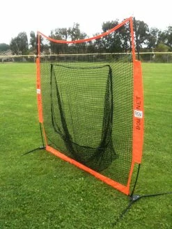 Outperform with the little brother of the Big Mouth® – the most reliable baseball and softball training net in the in market. Coaches, parents, and players worldwide prefer this 6′ wide x 6′ tall training net because of its portability, ease of set up, and outstanding reliability during practice. The powder coated steel frame is engineered with composite BOW™ poles giving the Big Mouth® its incredible strength and long lasting durability throughout the years. The training net’s fold-able hinged frame quickly assembles in 60 seconds with no tools, pins, or buttons required. The steel base is lined with rubber non-marking feet to help maintain stance indoor and outdoor, prevent damage to floors, and allow for an uninterrupted practice. High intensity hitting and pitching training is no match for this heavy duty trainer! With Bownet’s EAS™ technology (Energy Absorption System™), players will benefit from a training net that diffuses ball energy throughout the net and poles to extend its lifespan, create a more balanced training net, and add flexibility and stability upon impact. The ultra durable nylon net accommodates Wiffle® sized baseballs, softballs, and even Wiffle® golf balls. The lightweight net and frame collapse into the manageable carrying bag for easy portability and storage. One year limited manufacturer warranty available. PLAY ANYWHERE. – PLAY NOW!®