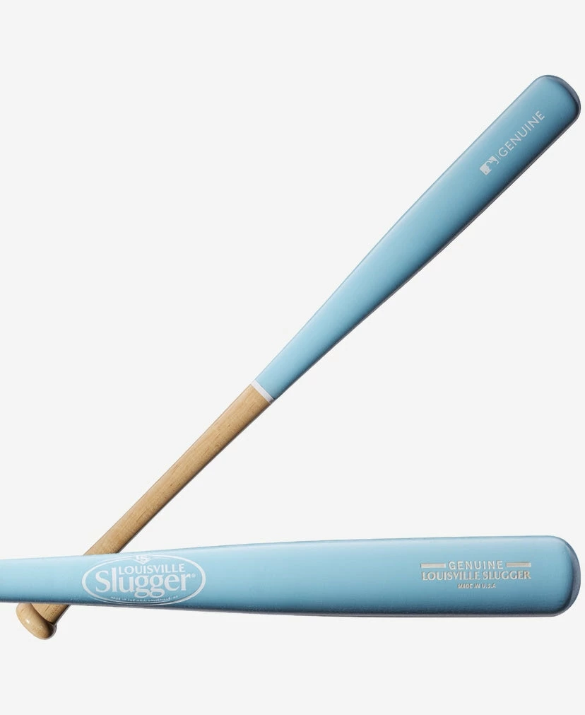 Made in the USA, the Louisville Slugger Genuine Light Blue Maple Baseball Bat is available in adult lengths – 31”, 32”, 33” and 34”. Featuring an unfinished look, the bat’s light blue barrel contrasts with the natural handle, and white Louisville Slugger branding stands out. Featuring a cupped design, the Genuine Maple bat offers an extremely balanced swing weight in batting practice or live at bats.