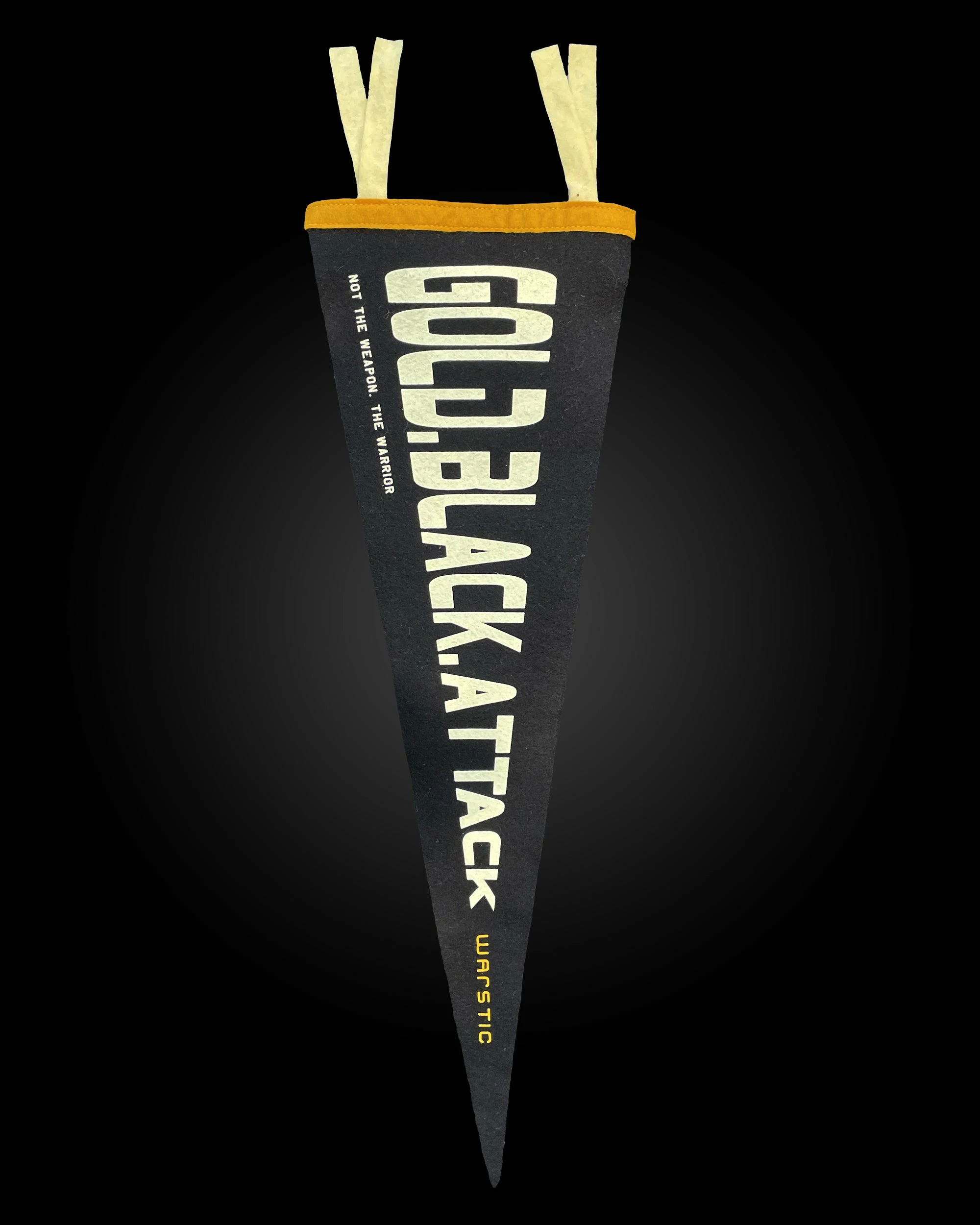 Made by Oxford Pennant in Buffalo, New York, the Gold Black Attack Pennant is an ode to our battle cry. Its modern block font has a space age feel, getting you pumped about what the future has in store as you gaze at it on your wall.
