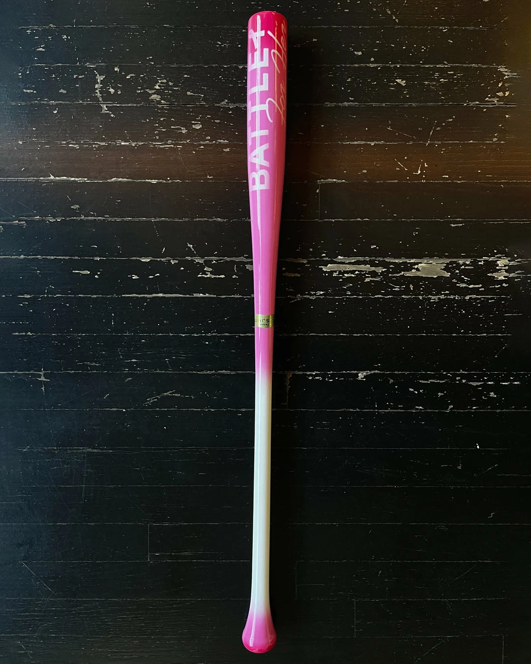 The Battle Pink Style WSF300 Maple Pro Stock Fungo Wood Bat is inspired by the custom design created for Kike Hernandez during the Little League Classic. By popular demand, we created a limited run of this banded red gradient with a navy wartip and purchase includes a custom engraving of your choice.