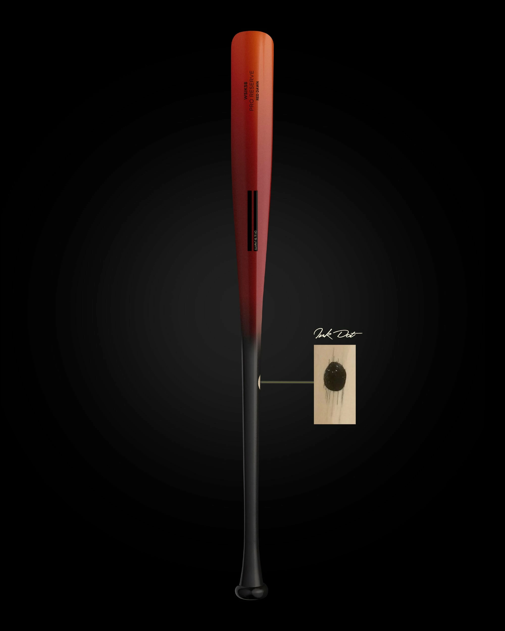 The Red Dawn by Warstic features a fire Wartip fading into blood barrel and black handle, with black Warstripe logo and engraving. Cut from our Pro Reserve stock of maple, as indicated by the “Ink Dot” on the handle. As part of the exclusive, small batch release, “Red Dawn” is engraved on the barrel of the bat.