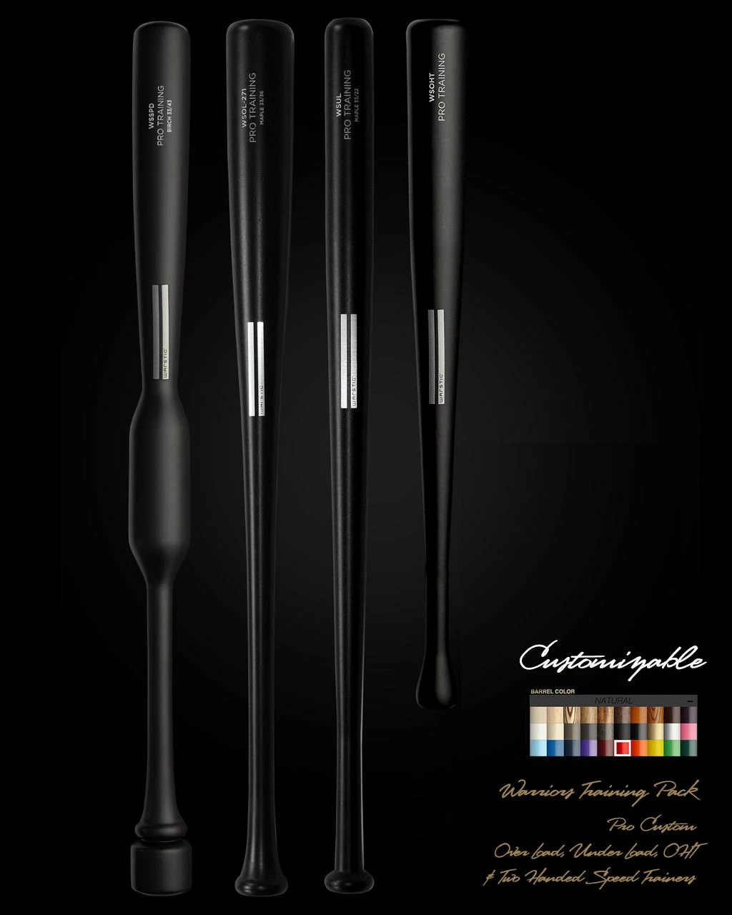 The Warrior’s Training Wood Bat Set by Warstic is a fully customizable expert training pack developed by our Pro Team to cover the core training techniques of the hitter’s daily routine for development and maintenance. This custom wood bat set is made to order in your chosen specs and color scheme. These bats are MADE TO ORDER and ship 16-28 business days from date of purchase.