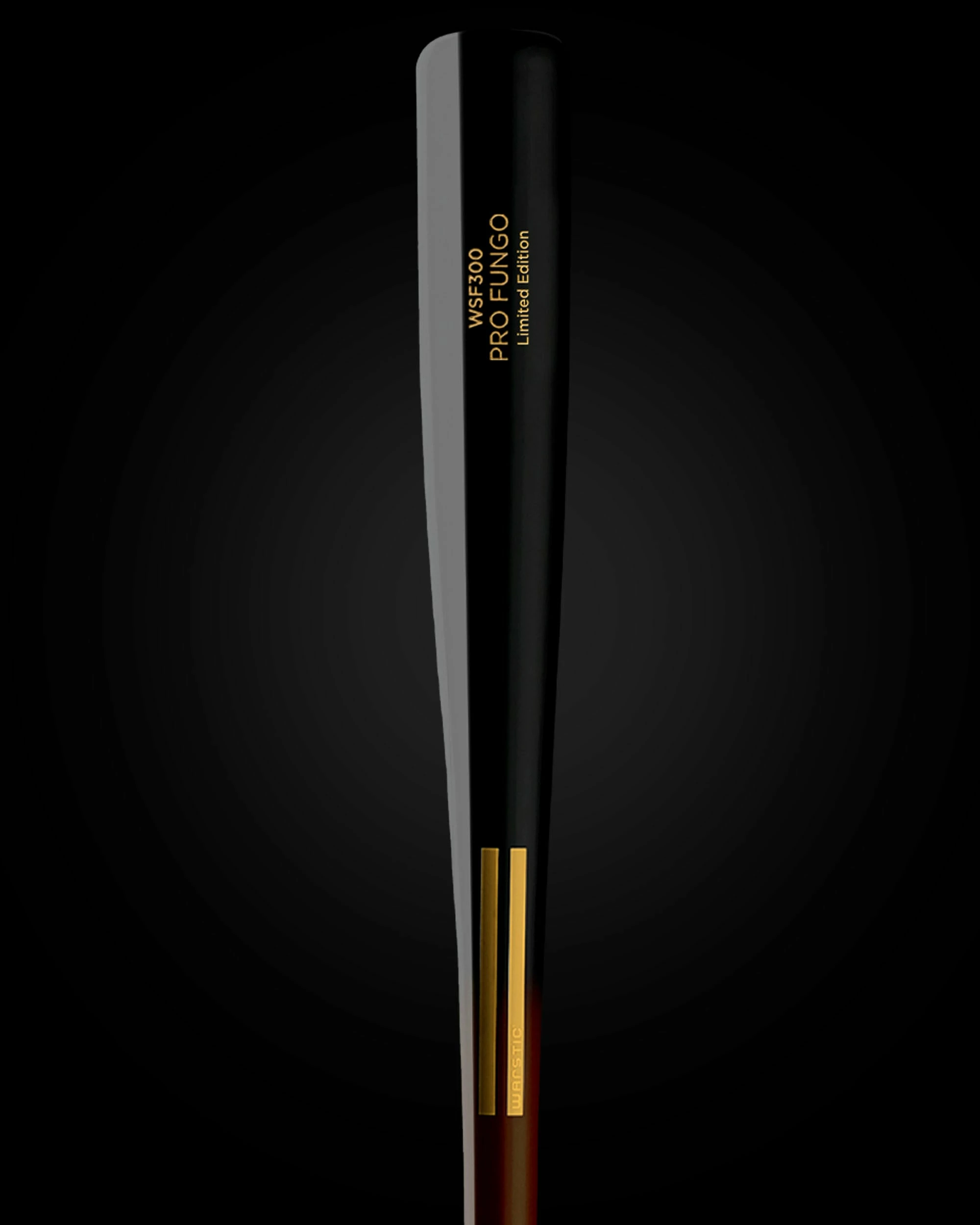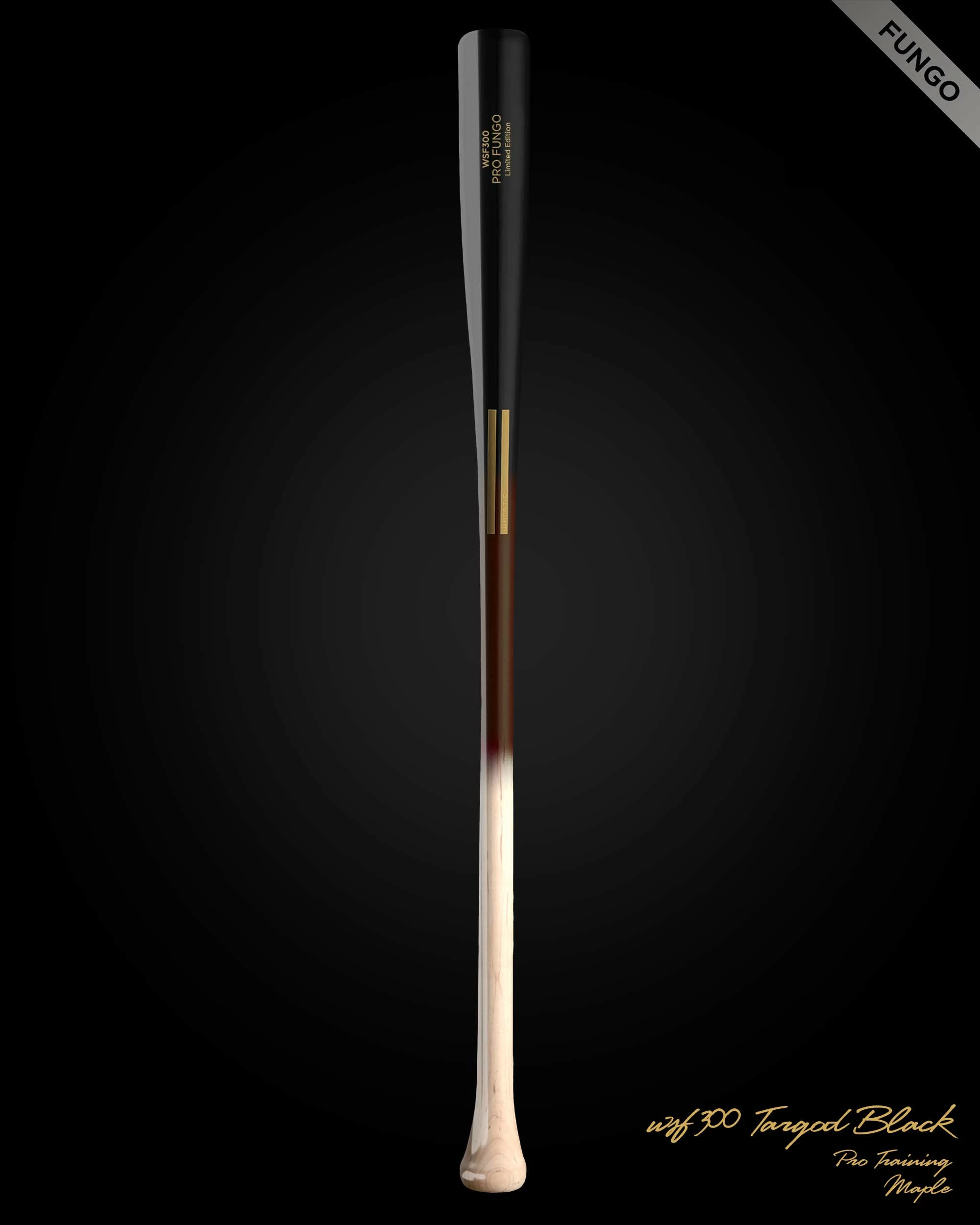The WSF300 Targod Maple Stock Fungo Wood Bat by Warstic is lightweight and durable, with a classically-shaped profile and a cone knob. For added protection, it comes standard with our Pro Armor Finish hard gloss. Features our popular Targod (Black) stain style, with its black half-dip barrel stain, mid-fade band in tobacco color, natural handle, and gold logo and engraving.
